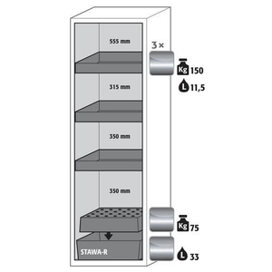 Veiligheidskast S-CLASSIC-90, Totale hoogte: 1968 mm, Totale breedte: 596 mm, Totale hoogte (Reeks): Hoog (1500 - 2300 mm), Totale breedte (Reeks): 500 - 800 mm, Aantal legborden: 3, Voor producten: Ontvlambare stoffen, Brandveilig: 90 min, Inhoud opvangbak: 33 L, Aantal vakken: 1, Model: 3x opvanglegbord, 1x rooster, 1x opvangbak op de vloer (roestvrij staal), Aantal deuren: 1, Kleur ombouw: Wit, Kleur deur: Wit, Totale diepte: 616 mm, Nuttige breedte: 450 m, Nuttige diepte: 524 mm, Nuttige hoogte: 1742 mm, Materiaal: Staal, Gewicht: 294.165 kg, RAL: 9016, Special Covid-19: nee