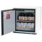 Veilige opslag, voldoet aan de geldende regelgeving voor gevaarlijke, ontvlambare producten in werkruimtes Functie / constructie: Robuust en duurzaam: stalen constructie aan de buitenkant met epoxy-coating Werkcomfort: de deuren zijn in alle posities geblokkeerd, veilige toegang tot alle containers – openingshoek van de deuren 93°, binnenkant van de kast is volledig zichtbaar Gecontroleerd gebruik: vergrendelbare deuren slot, indicator voor deurvergrendeling (rood/groen) Mobiel: optionele sokkel met wielen, voor eenvoudig verplaatsen van de kast Beluchting en ontluchting: ingebouwd beluchtings- en ventilatiesysteem voor aansluiting (diameter 50 mm) op een technisch luchtafvoersysteem