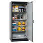 Veilige opslag, voldoet aan de geldende regelgeving voor gevaarlijke, ontvlambare producten in werkruimtes Robuust en duurzaam: Stevige constructie aan de buitenzijde van brandwerende platen met een coating van melaminehars 3 bevestigingsscharnieren per deur, volledig sluitmechanisme en beveiligingselementen ter bescherming tegen corrosie, gemonteerd buiten de opslagruimte hoogwaardige deur, krasbestendig, met gestructureerd oppervlak met epoxy-coating Ergonomisch: de deur blijft in de stand staan bij het openen, automatische sluiting in geval van brand Gecontroleerd gebruik: vergrendelbare deur, compatibel met centrale vergrendeling Eenvoudig transport: geïntegreerde transportsokkel, eenvoudig afgewerkte plint of plint met 4 nivelleringsvoeten optioneel beschikbaar Beluchting en ontluchting: ingebouwd beluchtings- en ventilatiesysteem voor aansluiting (diameter 75 mm) op een technisch luchtafvoersysteem Getest en gecertificeerd conform de Amerikaanse norm FM 6050 Let op: wij raden aan om naast de kast ook de plint met verstelinrichting te bestellen. Hierdoor is het mogelijk om snel en veilig kleine oneffenheden in de vloer op te vangen, zodat de kast eenvoudig en zonder veel moeite kan worden versteld. Voor de technische ventilatie van de kast adviseren wij de ventilatiebox met geïntegreerde filtratie (zonder gaten in de muren te boren of afvoerleidingen naar buiten).