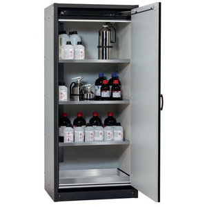 Veiligheidskast Q-CLASSIC-30 Q30.195.086 grijs/wit_Asecos, Totale hoogte: 1947 mm, Totale breedte: 864 mm, Totale hoogte (Reeks): Hoog (1500 - 2300 mm), Totale breedte (Reeks): 800 mm, Aantal legborden: 3, Voor producten: Ontvlambare stoffen, Brandveilig: 30 min, Inhoud opvangbak: 22 L, Aantal vakken: 1, Model: 3x legbord, 1x opvangbak op de vloer (roestvrij staal), Aantal deuren: 1, Kleur ombouw: Antraciet, Kleur deur: Wit, Totale diepte: 620 mm, Nuttige breedte: 750 mm, Nuttige diepte: 519 mm, Nuttige hoogte: 1626 mm, Materiaal: Staal, Gewicht: 230.608 kg, Special Covid-19: nee
