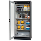 Veilige opslag, voldoet aan de geldende regelgeving voor gevaarlijke, ontvlambare producten in werkruimtes Stevige constructie aan de buitenzijde van brandwerende platen met een coating van melaminehars Volledig sluitmechanisme en beveiligingselementen ter bescherming tegen corrosie, gemonteerd buiten de opslagruimte Hoogwaardige deur, krasbestendig, met gestructureerd oppervlak met epoxy-coating Optimale zichtbaarheid: groot glazen oppervlak voor snel en eenvoudig overzicht van de containers - zonder de deur te openen Ergonomisch: de deur blijft in de stand staan bij het openen, automatische sluiting in geval van brand Gecontroleerd gebruik: vergrendelbare deur, compatibel met centrale vergrendeling Eenvoudig transport: geïntegreerde transportsokkel, eenvoudig afgewerkte plint of plint met 4 nivelleringsvoeten optioneel beschikbaar Beluchting/ontluchting: geïntegreerd beluchtings- en ventilatiesysteem voor aansluiting (diameter 75 mm) op een technisch luchtafvoersysteem Let op: wij raden aan om naast de kast ook de plint met verstelinrichting te bestellen. Hierdoor is het mogelijk om snel en veilig kleine oneffenheden in de vloer op te vangen, zodat de kast eenvoudig en zonder veel moeite kan worden versteld. Voor de technische ventilatie van de kast adviseren wij de ventilatiebox met geïntegreerde filtratie (zonder gaten in de muren te boren of afvoerleidingen naar buiten).