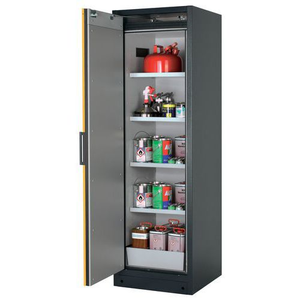 Veiligheidskast Q-CLASSIC-90 Q90.195.060 grijs/geel_Asecos, Totale hoogte: 1953 mm, Totale breedte: 599 mm, Totale hoogte (Reeks): Hoog (1500 - 2300 mm), Totale breedte (Reeks): 500 - 800 mm, Aantal legborden: 4, Voor producten: Ontvlambare stoffen, Brandveilig: 90 min, Inhoud opvangbak: 22 L, Aantal vakken: 1, Model: 4x legbord, 1x rooster, 1x opvangbak op de vloer (plaatstaal met epoxy-coating), Aantal deuren: 1, Kleur ombouw: Antraciet, Kleur deur: Geel, Totale diepte: 615 mm, Nuttige breedte: 450 mm, Nuttige diepte: 522 mm, Nuttige hoogte: 1647 mm, Materiaal: Staal, Gewicht: 321.78 kg, RAL: 7016, Special Covid-19: nee