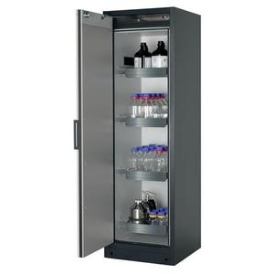 Veilige opslag, voldoet aan de geldende regelgeving voor gevaarlijke, ontvlambare producten in werkruimtes Robuust en duurzaam: Stevige constructie aan de buitenzijde van brandwerende platen met een coating van melaminehars 3 bevestigingsscharnieren per deur, volledig sluitmechanisme en beveiligingselementen ter bescherming tegen corrosie, gemonteerd buiten de opslagruimte hoogwaardige deur, krasbestendig met gestructureerd oppervlak met epoxy-coating Ergonomisch: de deur blijft in de stand staan bij het openen, automatische sluiting in geval van brand. Gecontroleerd gebruik: vergrendelbare deur, compatibel met centrale vergrendeling Eenvoudig transport: geïntegreerde transportsokkel eenvoudig afgewerkte plint of plint met 4 nivelleringsvoeten optioneel beschikbaar Beluchting en ontluchting: ingebouwd beluchtings- en ventilatiesysteem voor aansluiting (diameter 75 mm) op een technisch luchtafvoersysteem Getest en gecertificeerd conform de Amerikaanse norm FM 6050