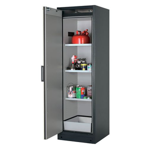 Veiligheidskast Q-CLASSIC-90 Q90.195.060 grijs/zilver_Asecos, Totale hoogte: 1953 mm, Totale breedte: 599 mm, Totale hoogte (Reeks): Hoog (1500 - 2300 mm), Totale breedte (Reeks): 500 - 800 mm, Aantal legborden: 3, Voor producten: Ontvlambare stoffen, Brandveilig: 90 min, Inhoud opvangbak: 22 L, Aantal vakken: 1, Model: 3x legbord, 1x opvangbak op de vloer (plaatstaal met epoxy-coating), Aantal deuren: 1, Kleur ombouw: Antraciet, Kleur deur: Zilver, Totale diepte: 615 mm, Nuttige breedte: 450 mm, Nuttige diepte: 522 mm, Nuttige hoogte: 1647 mm, Materiaal: Staal, Gewicht: 315.28 kg, RAL: 7016, Special Covid-19: nee, CLP - Ontvlambare stoffen: ja