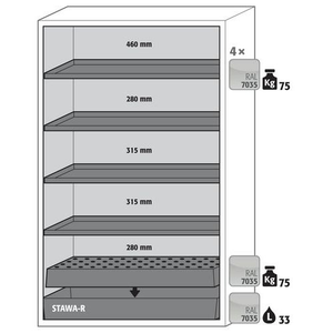 Veiligheidskast S-PHOENIX-90 S90.196.120_Asecos, Totale hoogte: 1968 mm, Totale breedte: 1196 mm, Totale hoogte (Reeks): Hoog (1500 - 2300 mm), Totale breedte (Reeks): 800 mm, Aantal legborden: 4, Voor producten: Ontvlambare stoffen, Brandveilig: 90 min, Inhoud opvangbak: 33 L, Aantal vakken: 1, Model: S90.196.120.FDAS, Aantal deuren: 2, Kleur ombouw: Lichtgrijs, Kleur deur: Lichtgrijs, Totale diepte: 616 mm, Nuttige breedte: 1050 mm, Nuttige diepte: 524 mm, Nuttige hoogte: 1742 mm, Max. belasting: 600 kg, Materiaal: Staal, Gewicht: 420 kg, RAL: 7035, Special Covid-19: nee, CLP - Ontvlambare stoffen: ja