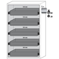 Veiligheidskast S-PHOENIX-90 S90.196.120_Asecos, Totale hoogte: 1968 mm, Totale breedte: 1196 mm, Totale hoogte (Reeks): Hoog (1500 - 2300 mm), Totale breedte (Reeks): 800 mm, Aantal legborden: 0, Voor producten: Ontvlambare stoffen, Brandveilig: 90 min, Inhoud opvangbak: 0 L, Aantal vakken: 1, Model: 5x lade (roestvrij staal), Aantal deuren: 2, Kleur ombouw: Lichtgrijs, Kleur deur: Lichtgrijs, Totale diepte: 616 mm, Nuttige breedte: 1050 mm, Nuttige diepte: 524 mm, Nuttige hoogte: 1742 mm, Gewicht: 519.488 kg, RAL: 7035, Special Covid-19: nee