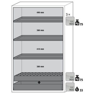 Veiligheidskast S-PHOENIX Vol.2-90 S90.196.120_Asecos, Totale hoogte: 1968 mm, Totale breedte: 1196 mm, Totale hoogte (Reeks): Hoog (1500 - 2300 mm), Totale breedte (Reeks): 800 mm, Aantal legborden: 3, Voor producten: Ontvlambare stoffen, Brandveilig: 90 min, Inhoud opvangbak: 33 L, Aantal vakken: 1, Model: S90.196.120.FDAC, Aantal deuren: 2, Kleur ombouw: Lichtgrijs, Kleur deur: Lichtgrijs, Totale diepte: 616 mm, Nuttige breedte: 1050 mm, Nuttige diepte: 524 mm, Nuttige hoogte: 1742 mm, Max. belasting: 600 kg, Materiaal: Staal, Gewicht: 420 kg, RAL: 7035, Special Covid-19: nee, CLP - Ontvlambare stoffen: ja
