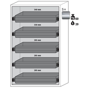 Veiligheidskast S-PHOENIX touchless-90_Asecos, Totale hoogte: 1968 mm, Totale breedte: 1196 mm, Totale hoogte (Reeks): Hoog (1500 - 2300 mm), Totale breedte (Reeks): 800 mm, Aantal legborden: 0, Voor producten: Ontvlambare stoffen, Brandveilig: 90 min, Inhoud opvangbak: 0 L, Aantal vakken: 1, Model: 5x lade (roestvrij staal), Aantal deuren: 2, Kleur ombouw: Lichtgrijs, Kleur deur: Lichtgrijs, Totale diepte: 616 mm, Nuttige breedte: 1050 mm, Nuttige diepte: 524 mm, Nuttige hoogte: 1742 mm, Gewicht: 530.488 kg, RAL: 7035, Special Covid-19: nee