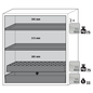Veilige opslag, voldoet aan de geldende regelgeving voor gevaarlijke, ontvlambare producten in werkruimtes Robuust en duurzaam: Stevige constructie aan de buitenzijde van brandwerende platen met een coating van melaminehars 3 bevestigingsscharnieren per deur volledig sluitmechanisme en beveiligingselementen ter bescherming tegen corrosie, gemonteerd buiten de opslagruimte hoogwaardige deur, krasbestendig, met gestructureerd oppervlak met epoxy-coating Ergonomisch: de deur blijft in de stand staan bij het openen, automatische sluiting in geval van brand Gecontroleerd gebruik: vergrendelbare deur, compatibel met centrale vergrendeling Eenvoudig transport: geïntegreerde transportsokkel, eenvoudig afgewerkte plint of plint met 4 nivelleringsvoeten optioneel beschikbaar Beluchting en ontluchting: ingebouwd beluchtings- en ventilatiesysteem voor aansluiting (diameter 75 mm) op een technisch luchtafvoersysteem Getest en gecertificeerd conform de Amerikaanse norm FM 6050
