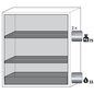 Veilige opslag, voldoet aan de geldende regelgeving voor gevaarlijke, ontvlambare producten in werkruimtes Robuust en duurzaam: Stevige constructie aan de buitenzijde van brandwerende platen met een coating van melaminehars 3 bevestigingsscharnieren per deur volledig sluitmechanisme en beveiligingselementen ter bescherming tegen corrosie, gemonteerd buiten de opslagruimte hoogwaardige deur, krasbestendig, met gestructureerd oppervlak met epoxy-coating Ergonomisch: de deur blijft in de stand staan bij het openen, automatische sluiting in geval van brand Gecontroleerd gebruik: vergrendelbare deur, compatibel met centrale vergrendeling Eenvoudig transport: geïntegreerde transportsokkel, eenvoudig afgewerkte plint of plint met 4 nivelleringsvoeten optioneel beschikbaar Beluchting en ontluchting: ingebouwd beluchtings- en ventilatiesysteem voor aansluiting (diameter 75 mm) op een technisch luchtafvoersysteem Getest en gecertificeerd conform de Amerikaanse norm FM 6050