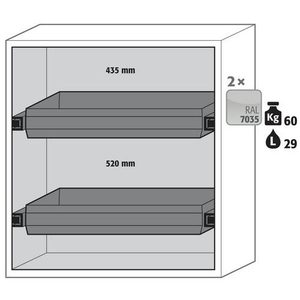 Veiligheidskast S-CLASSIC-90 S90.129.120 geel_Asecos, Totale hoogte: 1298 mm, Totale breedte: 1196 mm, Totale hoogte (Reeks): Medium high (900 - 1400 mm), Totale breedte (Reeks): 800 mm, Aantal legborden: 0, Voor producten: Ontvlambare stoffen, Brandveilig: 90 min, Inhoud opvangbak: 0 L, Aantal vakken: 1, Model: 2x lade (plaatstaal met epoxy-coating), Aantal deuren: 2, Kleur ombouw: Lichtgrijs, Kleur deur: Lichtgrijs, Totale diepte: 616 mm, Nuttige breedte: 1050 mm, Nuttige diepte: 524 mm, Nuttige hoogte: 1072 mm, Gewicht: 352.488 kg, RAL: 7035, Special Covid-19: nee