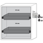 Veilige opslag, voldoet aan de geldende regelgeving voor gevaarlijke, ontvlambare producten in werkruimtes Robuust en duurzaam: Stevige constructie aan de buitenzijde van brandwerende platen met een coating van melaminehars 3 bevestigingsscharnieren per deur volledig sluitmechanisme en beveiligingselementen ter bescherming tegen corrosie, gemonteerd buiten de opslagruimte hoogwaardige deur, krasbestendig, met gestructureerd oppervlak met epoxy-coating Ergonomisch: de deur blijft in de stand staan bij het openen, automatische sluiting in geval van brand Gecontroleerd gebruik: vergrendelbare deur, compatibel met centrale vergrendeling Eenvoudig transport: geïntegreerde transportsokkel, eenvoudig afgewerkte plint of plint met 4 nivelleringsvoeten optioneel beschikbaar Beluchting en ontluchting: ingebouwd beluchtings- en ventilatiesysteem voor aansluiting (diameter 75 mm) op een technisch luchtafvoersysteem Getest en gecertificeerd conform de Amerikaanse norm FM 6050