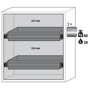 Veiligheidskast S-PEGASUS-90_Asecos, Totale hoogte: 1298 mm, Totale breedte: 1196 mm, Totale hoogte (Reeks): Medium high (900 - 1400 mm), Totale breedte (Reeks): 800 mm, Aantal legborden: 0, Voor producten: Ontvlambare stoffen, Brandveilig: 90 min, Inhoud opvangbak: 0 L, Aantal vakken: 1, Model: 2x lade (roestvrij staal), Aantal deuren: 2, Kleur ombouw: Lichtgrijs, Kleur deur: Lichtgrijs, Totale diepte: 616 mm, Nuttige breedte: 1050 mm, Nuttige diepte: 524 mm, Nuttige hoogte: 1072 mm, Gewicht: 354.488 kg, RAL: 7035, Special Covid-19: nee