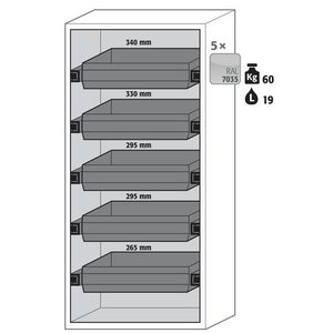 Veiligheidskast S-CLASSIC-90 S90.196.090 geel_Asecos, Totale hoogte: 1968 mm, Totale breedte: 896 mm, Totale hoogte (Reeks): Hoog (1500 - 2300 mm), Totale breedte (Reeks): 800 mm, Aantal legborden: 0, Voor producten: Ontvlambare stoffen, Brandveilig: 90 min, Inhoud opvangbak: 0 L, Aantal vakken: 1, Model: 5x lade (plaatstaal met epoxy-coating), Aantal deuren: 2, Kleur ombouw: Geel, Kleur deur: Geel, Totale diepte: 616 mm, Nuttige breedte: 750 mm, Nuttige diepte: 524 mm, Nuttige hoogte: 1742 mm, Max. belasting: 600 kg, Materiaal: Staal, Gewicht: 420.108 kg, RAL: 1004, Special Covid-19: nee, CLP - Ontvlambare stoffen: ja