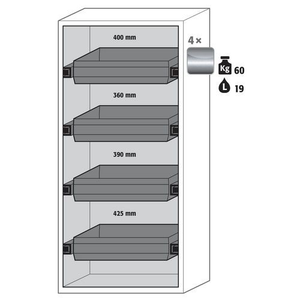 Veiligheidskast S-CLASSIC-90 S90.196.090 geel_Asecos, Totale hoogte: 1968 mm, Totale breedte: 896 mm, Totale hoogte (Reeks): Hoog (1500 - 2300 mm), Totale breedte (Reeks): 800 mm, Aantal legborden: 0, Voor producten: Ontvlambare stoffen, Brandveilig: 90 min, Inhoud opvangbak: 0 L, Aantal vakken: 1, Model: 4x lade (roestvrij staal), Aantal deuren: 2, Kleur ombouw: Geel, Kleur deur: Geel, Totale diepte: 616 mm, Nuttige breedte: 750 mm, Nuttige diepte: 524 mm, Nuttige hoogte: 1742 mm, Max. belasting: 600 kg, Materiaal: Staal, Gewicht: 406.608 kg, RAL: 1004, Special Covid-19: nee, CLP - Ontvlambare stoffen: ja