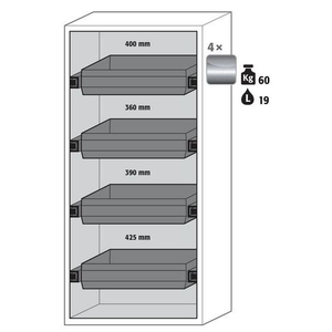 Veiligheidskast S-CLASSIC-90, Totale hoogte: 1968 mm, Totale breedte: 896 mm, Totale hoogte (Reeks): Hoog (1500 - 2300 mm), Totale breedte (Reeks): 800 mm, Aantal legborden: 0, Voor producten: Ontvlambare stoffen, Brandveilig: 90 min, Inhoud opvangbak: 0 L, Aantal vakken: 1, Model: 4x lade (roestvrij staal), Aantal deuren: 2, Kleur ombouw: Wit, Kleur deur: Wit, Totale diepte: 616 mm, Nuttige breedte: 750 m, Nuttige diepte: 524 mm, Nuttige hoogte: 1742 mm, Gewicht: 406.608 kg, RAL: 9016, Special Covid-19: nee