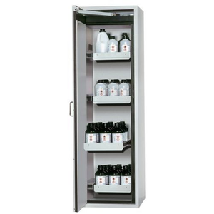 Veilige opslag, voldoet aan de geldende regelgeving voor gevaarlijke, ontvlambare producten in werkruimtes Robuust en duurzaam: Stevige constructie aan de buitenzijde van brandwerende platen met een coating van melaminehars 3 bevestigingsscharnieren per deur volledig sluitmechanisme en beveiligingselementen ter bescherming tegen corrosie, gemonteerd buiten de opslagruimte hoogwaardige deur, krasbestendig, met gestructureerd oppervlak met epoxy-coating Ergonomisch: de deur blijft in de stand staan bij het openen, automatische sluiting in geval van brand Gecontroleerd gebruik: vergrendelbare deur, compatibel met centrale vergrendeling Eenvoudig transport: geïntegreerde transportsokkel, eenvoudig afgewerkte plint of plint met 4 nivelleringsvoeten optioneel beschikbaar Beluchting en ontluchting: ingebouwd beluchtings- en ventilatiesysteem voor aansluiting (diameter 75 mm) op een technisch luchtafvoersysteem Getest en gecertificeerd conform de Amerikaanse norm FM 6050
