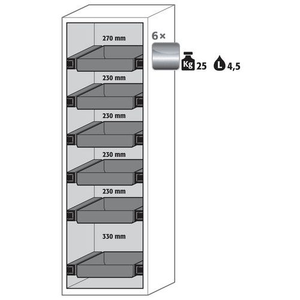Veiligheidskast S-CLASSIC-90 S90.196.060 geel_Asecos, Totale hoogte: 1968 mm, Totale breedte: 596 mm, Totale hoogte (Reeks): Hoog (1500 - 2300 mm), Totale breedte (Reeks): 500 - 800 mm, Aantal legborden: 3, Voor producten: Ontvlambare stoffen, Brandveilig: 90 min, Inhoud opvangbak: 22 L, Aantal vakken: 1, Model: S90.196.060, Aantal deuren: 1, Kleur ombouw: Lichtgrijs, Kleur deur: Lichtgrijs, Totale diepte: 616 mm, Nuttige breedte: 450 mm, Nuttige diepte: 524 mm, Nuttige hoogte: 1742 mm, Max. belasting: 600 kg, Materiaal: Staal, Gewicht: 260 kg, RAL: 7035, Special Covid-19: nee, CLP - Ontvlambare stoffen: ja