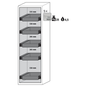Veilige opslag, voldoet aan de geldende regelgeving voor gevaarlijke, ontvlambare producten in werkruimtes Robuust en duurzaam: stevige constructie aan de buitenkant van staal met epoxy-coating, 3 bevestigingsscharnieren per deur, volledig sluitmechanisme en beveiligingselementen ter bescherming tegen corrosie, gemonteerd buiten de opslagruimte Inklapbare deur die weinig ruimte in beslag neemt: minder ruimte vereist vóór de kast wanneer de deur geopend is Comfortabel: automatisch deursluitmechanisme, deuren kunnen in geopende stand worden gehouden. Veilige opslag van containers Altijd gesloten: het automatisch deursluitsysteem (TSA) sluit de geblokkeerde deur na 60 seconden vrij, geluidsalarm en visueel alarm voordat de deur sluit Gecontroleerd gebruik: vergrendelbare deur, compatibel met centrale vergrendeling Beluchting en ontluchting: ingebouwd beluchtings- en ventilatiesysteem voor aansluiting (diameter 75 mm) op een technisch luchtafvoersysteem Let op: voor de technische ventilatie van de kast adviseren wij de ventilatiebox met geïntegreerde filtratie (zonder gaten in de muren te boren of afvoerleidingen naar buiten).