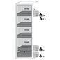 Veilige opslag, voldoet aan de geldende regelgeving voor gevaarlijke, ontvlambare producten in werkruimtes Robuust en duurzaam: stevige constructie aan de buitenkant van staal met epoxy-coating, 3 bevestigingsscharnieren per deur, volledig sluitmechanisme en beveiligingselementen ter bescherming tegen corrosie, gemonteerd buiten de opslagruimte Inklapbare deur die weinig ruimte in beslag neemt: minder ruimte vereist vóór de kast wanneer de deur geopend is Comfortabel: automatisch deursluitmechanisme, deuren kunnen in geopende stand worden gehouden. Veilige opslag van containers Altijd gesloten: het automatisch deursluitsysteem (TSA) sluit de geblokkeerde deur na 60 seconden vrij, geluidsalarm en visueel alarm voordat de deur sluit Gecontroleerd gebruik: vergrendelbare deur, compatibel met centrale vergrendeling Beluchting en ontluchting: ingebouwd beluchtings- en ventilatiesysteem voor aansluiting (diameter 75 mm) op een technisch luchtafvoersysteem Let op: voor de technische ventilatie van de kast adviseren wij de ventilatiebox met geïntegreerde filtratie (zonder gaten in de muren te boren of afvoerleidingen naar buiten).