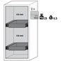 Veilige opslag, voldoet aan de geldende regelgeving voor gevaarlijke, ontvlambare producten in werkruimtes Robuust en duurzaam: Stevige constructie aan de buitenzijde van brandwerende platen met een coating van melaminehars 3 bevestigingsscharnieren per deur volledig sluitmechanisme en beveiligingselementen ter bescherming tegen corrosie, gemonteerd buiten de opslagruimte hoogwaardige deur, krasbestendig, met gestructureerd oppervlak met epoxy-coating Ergonomisch: de deur blijft in de stand staan bij het openen, automatische sluiting in geval van brand Gecontroleerd gebruik: vergrendelbare deur, compatibel met centrale vergrendeling Eenvoudig transport: geïntegreerde transportsokkel, eenvoudig afgewerkte plint of plint met 4 nivelleringsvoeten optioneel beschikbaar Beluchting en ontluchting: ingebouwd beluchtings- en ventilatiesysteem voor aansluiting (diameter 75 mm) op een technisch luchtafvoersysteem Getest en gecertificeerd conform de Amerikaanse norm FM 6050