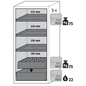 Veilige opslag, voldoet aan de geldende regelgeving voor gevaarlijke, ontvlambare producten in werkruimtes Functie/constructie: Robuust en duurzaam: stevige stalen constructie aan de buitenkant met epoxy-coating 3 bevestigingsscharnieren per deur, volledig sluitmechanisme en beveiligingselementen ter bescherming tegen corrosie, gemonteerd buiten de opslagruimte Comfortabel: automatisch deursluitsysteem, deuren kunnen in geopende stand worden gehouden. Veilige opslag van containers Altijd gesloten: automatisch deursluitsysteem (TSA) sluit de geblokkeerde deur na 60 seconde, geluidsalarm en visueel alarm voordat de deur sluit Gecontroleerd gebruik: vergrendelbare deur, compatibel met centrale vergrendeling Eenvoudige installatie: geïntegreerde verstelbare poten Beluchting en ontluchting: ingebouwd beluchtings- en ventilatiesysteem voor aansluiting (diameter 75 mm) op een technisch luchtafvoersysteem Let op: voor de technische ventilatie van de kast adviseren wij de ventilatiebox met geïntegreerde filtratie (zonder gaten in de muren te boren of afvoerleidingen naar buiten).