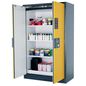 Veiligheidskast voor brandbare producten, Totale hoogte: 1953 mm, Totale breedte: 893 mm, Totale hoogte (Reeks): Hoog (1500 - 2300 mm), Totale breedte (Reeks): 800 mm, Aantal legborden: 3, Voor producten: Ontvlambare stoffen, Brandveilig: 90 min, Inhoud opvangbak: 33 L, Aantal vakken: 1, Model: Classic, Aantal deuren: 2, Kleur ombouw: Donkergrijs, Kleur deur: Geel, Totale diepte: 62 mm, Nuttige breedte: 750 mm, Nuttige diepte: 519 mm, Nuttige hoogte: 1647 mm, Max. belasting: 600 kg, Gewicht: 451.5 kg, RAL: 1004, Deur openingstype: Klapdeur, Geleverd gemonteerd: ja, Special Covid-19: nee, Koolwaterstof oplosmiddelen: ja, CLP - Ontvlambare stoffen: ja