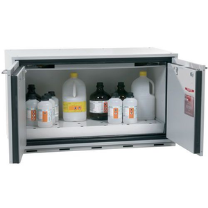 Veiligheidsonderbouwkast UB-T-30_Asecos, Totale hoogte: 600 mm, Totale breedte: 1102 mm, Totale hoogte (Reeks): Laag of onder laboratoriumtafel (600 - 800 mm), Totale breedte (Reeks): 800 mm, Aantal legborden: 0, Voor producten: Ontvlambare stoffen, Brandveilig: 30 min, Inhoud opvangbak: 25.5 L, Aantal vakken: 1, Model: 1x rooster, 1x opvangbak op de vloer (plaatstaal met epoxy-coating), Aantal deuren: 2, Kleur ombouw: Lichtgrijs, Kleur deur: Lichtgrijs, Totale diepte: 574 mm, Nuttige breedte: 979 mm, Nuttige diepte: 452 mm, Nuttige hoogte: 502 mm, Materiaal: Staal, Gewicht: 199.456 kg, RAL: 7035, Special Covid-19: nee