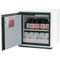 Veilige opslag, voldoet aan de geldende regelgeving voor gevaarlijke, ontvlambare producten in werkruimtes Functie / constructie: Robuust en duurzaam: stalen constructie aan de buitenkant met epoxy-coating Werkcomfort: de deuren zijn in alle posities geblokkeerd, veilige toegang tot alle containers – openingshoek van de deuren 93°, binnenkant van de kast is volledig zichtbaar Gecontroleerd gebruik: vergrendelbare deuren slot, indicator voor deurvergrendeling (rood/groen) Mobiel: optionele sokkel met wielen, voor eenvoudig verplaatsen van de kast Beluchting en ontluchting: ingebouwd beluchtings- en ventilatiesysteem voor aansluiting (diameter 50 mm) op een technisch luchtafvoersysteem