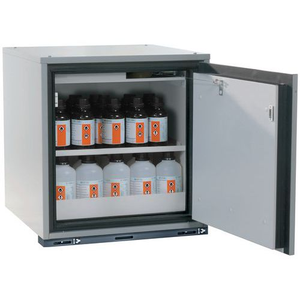 Veilige opslag, voldoet aan de geldende regelgeving voor gevaarlijke, ontvlambare producten in werkruimtes Functie / constructie: Robuust en duurzaam: stalen constructie aan de buitenkant met epoxy-coating Werkcomfort: de deuren zijn in alle posities geblokkeerd, veilige toegang tot alle containers – openingshoek van de deuren 93°, binnenkant van de kast is volledig zichtbaar Gecontroleerd gebruik: vergrendelbare deuren slot, indicator voor deurvergrendeling (rood/groen) Mobiel: optionele sokkel met wielen, voor eenvoudig verplaatsen van de kast Beluchting en ontluchting: ingebouwd beluchtings- en ventilatiesysteem voor aansluiting (diameter 50 mm) op een technisch luchtafvoersysteem