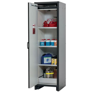 Veiligheidskast Q-CLASSIC-30 Q30.195.056_Asecos grijs/zilver, Totale hoogte: 1947 mm, Totale breedte: 564 mm, Totale hoogte (Reeks): Hoog (1500 - 2300 mm), Totale breedte (Reeks): 500 - 800 mm, Aantal legborden: 3, Voor producten: Ontvlambare stoffen, Brandveilig: 30 min, Inhoud opvangbak: 22 L, Aantal vakken: 1, Model: 3x legbord, 1x rooster, 1x opvangbak op de vloer (plaatstaal met epoxycoating), Aantal deuren: 1, Kleur ombouw: Antraciet, Kleur deur: Zilver, Totale diepte: 620 mm, Nuttige breedte: 450 mm, Nuttige diepte: 519 mm, Nuttige hoogte: 1626 mm, Materiaal: Staal, Gewicht: 186.528 kg, Special Covid-19: nee
