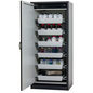 Veilige opslag, voldoet aan de geldende regelgeving voor gevaarlijke, ontvlambare producten in werkruimtes Robuust en duurzaam: Stevige constructie aan de buitenzijde van brandwerende platen met een coating van melaminehars 3 bevestigingsscharnieren per deur, volledig sluitmechanisme en beveiligingselementen ter bescherming tegen corrosie, gemonteerd buiten de opslagruimte hoogwaardige deur, krasbestendig, met gestructureerd oppervlak met epoxy-coating Ergonomisch: de deur blijft in de stand staan bij het openen, automatische sluiting in geval van brand Gecontroleerd gebruik: vergrendelbare deur, compatibel met centrale vergrendeling Eenvoudig transport: geïntegreerde transportsokkel, eenvoudig afgewerkte plint of plint met 4 nivelleringsvoeten optioneel beschikbaar Beluchting en ontluchting: ingebouwd beluchtings- en ventilatiesysteem voor aansluiting (diameter 75 mm) op een technisch luchtafvoersysteem Getest en gecertificeerd conform de Amerikaanse norm FM 6050 Let op: wij raden aan om naast de kast ook de plint met verstelinrichting te bestellen. Hierdoor is het mogelijk om snel en veilig kleine oneffenheden in de vloer op te vangen, zodat de kast eenvoudig en zonder veel moeite kan worden versteld. Voor de technische ventilatie van de kast adviseren wij de ventilatiebox met geïntegreerde filtratie (zonder gaten in de muren te boren of afvoerleidingen naar buiten).