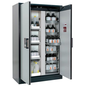 Veilige opslag, voldoet aan de geldende regelgeving voor gevaarlijke, ontvlambare producten in werkruimtes Robuust en duurzaam: Stevige constructie aan de buitenzijde van brandwerende platen met een coating van melaminehars 3 bevestigingsscharnieren per deur Volledig sluitmechanisme en beveiligingselementen ter bescherming tegen corrosie, gemonteerd buiten de opslagruimte hoogwaardige deur, krasbestendig, met gestructureerd oppervlak met epoxy-coating Ergonomisch: de deur blijft in de stand staan bij het openen, automatische sluiting in geval van brand Gecontroleerd gebruik: vergrendelbare deur, compatibel met centrale vergrendeling Eenvoudig transport: geïntegreerde transportsokkel, eenvoudig afgewerkte plint of plint met 4 nivelleringsvoeten optioneel beschikbaar Beluchting en ontluchting: ingebouwd beluchtings- en ventilatiesysteem voor aansluiting (diameter 75 mm) op een technisch luchtafvoersysteem Getest en gecertificeerd conform de Amerikaanse norm FM 6050 Let op: voor de technische ventilatie van de kast adviseren wij de ventilatiebox met geïntegreerde filtratie (zonder gaten in de muren te boren of afvoerleidingen naar buiten). We raden ook de plint aan om de geïntegreerde transportbasis goed af te sluiten.