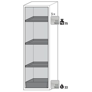 Veiligheidskast S-CLASSIC-90, Totale hoogte: 1968 mm, Totale breedte: 596 mm, Totale hoogte (Reeks): Hoog (1500 - 2300 mm), Totale breedte (Reeks): 500 - 800 mm, Aantal legborden: 3, Voor producten: Ontvlambare stoffen, Brandveilig: 90 min, Inhoud opvangbak: 22 L, Aantal vakken: 1, Model: 3x legbord, 1x opvangbak op de vloer (plaatstaal met epoxy-coating), Aantal deuren: 1, Kleur ombouw: Wit, Kleur deur: Wit, Totale diepte: 616 mm, Nuttige breedte: 450 m, Nuttige diepte: 524 mm, Nuttige hoogte: 1742 mm, Materiaal: Staal, Gewicht: 288.165 kg, RAL: 9016, Special Covid-19: nee
