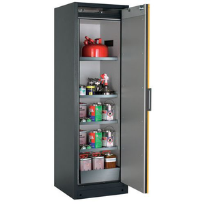 Veiligheidskast Q-CLASSIC-90 Q90.195.060 grijs/geel_Asecos, Totale hoogte: 1953 mm, Totale breedte: 599 mm, Totale hoogte (Reeks): Hoog (1500 - 2300 mm), Totale breedte (Reeks): 500 - 800 mm, Aantal legborden: 4, Voor producten: Ontvlambare stoffen, Brandveilig: 90 min, Inhoud opvangbak: 22 L, Aantal vakken: 1, Model: 4x legbord, 1x rooster, 1x opvangbak op de vloer (roestvrij staal), Aantal deuren: 1, Kleur ombouw: Antraciet, Kleur deur: Geel, Totale diepte: 615 mm, Nuttige breedte: 450 mm, Nuttige diepte: 522 mm, Nuttige hoogte: 1647 mm, Materiaal: Staal, Gewicht: 319.78 kg, RAL: 7016, Special Covid-19: nee