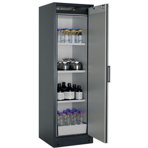 Veiligheidskast Q-CLASSIC-90 Q90.195.060 grijs/geel_Asecos, Totale hoogte: 1953 mm, Totale breedte: 599 mm, Totale hoogte (Reeks): Hoog (1500 - 2300 mm), Totale breedte (Reeks): 500 - 800 mm, Aantal legborden: 3, Voor producten: Ontvlambare stoffen, Brandveilig: 90 min, Inhoud opvangbak: 22 L, Aantal vakken: 1, Model: 3x legbord, 1x rooster, 1x opvangbak op de vloer (plaatstaal met epoxy-coating), Aantal deuren: 1, Kleur ombouw: Antraciet, Kleur deur: Lichtgrijs, Totale diepte: 615 mm, Nuttige breedte: 450 mm, Nuttige diepte: 522 mm, Nuttige hoogte: 1647 mm, Materiaal: Staal, Gewicht: 318.78 kg, RAL: 7016, Special Covid-19: nee