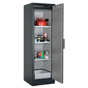 Veiligheidskast Q-CLASSIC-90 Q90.195.060 grijs/geel_Asecos, Totale hoogte: 1953 mm, Totale breedte: 599 mm, Totale hoogte (Reeks): Hoog (1500 - 2300 mm), Totale breedte (Reeks): 500 - 800 mm, Aantal legborden: 3, Voor producten: Ontvlambare stoffen, Brandveilig: 90 min, Inhoud opvangbak: 22 L, Aantal vakken: 1, Model: 3x legbord, 1x opvangbak op de vloer (plaatstaal met epoxycoating), Aantal deuren: 1, Kleur ombouw: Antraciet, Kleur deur: Lichtgrijs, Totale diepte: 615 mm, Nuttige breedte: 450 mm, Nuttige diepte: 522 mm, Nuttige hoogte: 1647 mm, Materiaal: Staal, Gewicht: 315.78 kg, RAL: 7016, Special Covid-19: nee