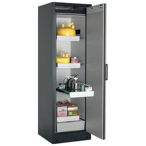 Veiligheidskast Q-CLASSIC-90 Q90.195.060 grijs/wit_Asecos, Totale hoogte: 1953 mm, Totale breedte: 599 mm, Totale hoogte (Reeks): Hoog (1500 - 2300 mm), Totale breedte (Reeks): 500 - 800 mm, Aantal legborden: 0, Voor producten: Ontvlambare stoffen, Brandveilig: 90 min, Inhoud opvangbak: 22 L, Aantal vakken: 1, Model: 3x lade, 1x lade (afvoer), 1x opvangbak op de vloer (plaatstaal met epoxy-coating), Aantal deuren: 1, Kleur ombouw: Antraciet, Kleur deur: Wit, Totale diepte: 615 mm, Nuttige breedte: 450 mm, Nuttige diepte: 522 mm, Nuttige hoogte: 1647 mm, Materiaal: Staal, Gewicht: 341.28 kg, RAL: 7016, Special Covid-19: nee