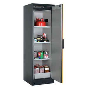 Veiligheidskast Q-PEGASUS-90 Q90.195.060 grijs/geel_Asecos, Totale hoogte: 1953 mm, Totale breedte: 599 mm, Totale hoogte (Reeks): Hoog (1500 - 2300 mm), Totale breedte (Reeks): 500 - 800 mm, Aantal legborden: 3, Voor producten: Ontvlambare stoffen, Brandveilig: 90 min, Inhoud opvangbak: 22 L, Aantal vakken: 1, Model: 3x legbord, 1x rooster, 1x opvangbak op de vloer (plaatstaal met epoxy-coating), Aantal deuren: 1, Kleur ombouw: Antraciet, Kleur deur: Geel, Totale diepte: 615 mm, Nuttige breedte: 450 mm, Nuttige diepte: 522 mm, Nuttige hoogte: 1647 mm, Materiaal: Staal, Gewicht: 317.78 kg, RAL: 7016, Special Covid-19: nee