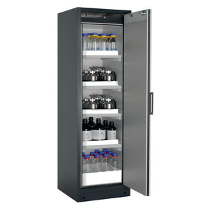 Veiligheidskast Q-PEGASUS-90 Q90.195.060 grijs/grijs_Asecos, Totale hoogte: 1953 mm, Totale breedte: 599 mm, Totale hoogte (Reeks): Hoog (1500 - 2300 mm), Totale breedte (Reeks): 500 - 800 mm, Aantal legborden: 4, Voor producten: Ontvlambare stoffen, Brandveilig: 90 min, Inhoud opvangbak: 11 L, Aantal vakken: 1, Model: 4x opvanglegbord, 1x opvangbak op de vloer (PP), Aantal deuren: 1, Kleur ombouw: Antraciet, Kleur deur: Lichtgrijs, Totale diepte: 615 mm, Nuttige breedte: 450 mm, Nuttige diepte: 522 mm, Nuttige hoogte: 1647 mm, Materiaal: Staal, Gewicht: 335.78 kg, RAL: 7016, Special Covid-19: nee