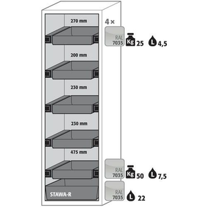 Veilige opslag, voldoet aan de geldende regelgeving voor gevaarlijke, ontvlambare producten in werkruimtes Robuust en duurzaam: Stevige constructie aan de buitenzijde van brandwerende platen met een coating van melaminehars 3 bevestigingsscharnieren per deur volledig sluitmechanisme en beveiligingselementen ter bescherming tegen corrosie, gemonteerd buiten de opslagruimte hoogwaardige deur, krasbestendig, met gestructureerd oppervlak met epoxy-coating Ergonomisch: de deur blijft in de stand staan bij het openen, automatische sluiting in geval van brand Gecontroleerd gebruik: vergrendelbare deur, compatibel met centrale vergrendeling Eenvoudig transport: geïntegreerde transportsokkel, eenvoudig afgewerkte plint of plint met 4 nivelleringsvoeten optioneel beschikbaar Beluchting en ontluchting: ingebouwd beluchtings- en ventilatiesysteem voor aansluiting (diameter 75 mm) op een technisch luchtafvoersysteem Getest en gecertificeerd conform de Amerikaanse norm FM 6050