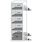 Veilige opslag, voldoet aan de geldende regelgeving voor gevaarlijke, ontvlambare producten in werkruimtes Robuust en duurzaam: Stevige constructie aan de buitenzijde van brandwerende platen met een coating van melaminehars 3 bevestigingsscharnieren per deur volledig sluitmechanisme en beveiligingselementen ter bescherming tegen corrosie, gemonteerd buiten de opslagruimte hoogwaardige deur, krasbestendig, met gestructureerd oppervlak met epoxy-coating Ergonomisch: de deur blijft in de stand staan bij het openen, automatische sluiting in geval van brand Gecontroleerd gebruik: vergrendelbare deur, compatibel met centrale vergrendeling Eenvoudig transport: geïntegreerde transportsokkel, eenvoudig afgewerkte plint of plint met 4 nivelleringsvoeten optioneel beschikbaar Beluchting en ontluchting: ingebouwd beluchtings- en ventilatiesysteem voor aansluiting (diameter 75 mm) op een technisch luchtafvoersysteem Getest en gecertificeerd conform de Amerikaanse norm FM 6050