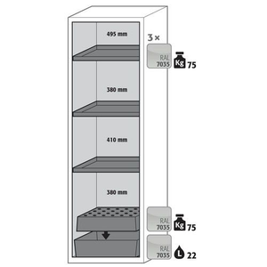 Veiligheidskast S-CLASSIC-90 S90.196.060 geel_Asecos, Totale hoogte: 1968 mm, Totale breedte: 596 mm, Totale hoogte (Reeks): Hoog (1500 - 2300 mm), Totale breedte (Reeks): 500 - 800 mm, Aantal legborden: 3, Voor producten: Ontvlambare stoffen, Brandveilig: 90 min, Inhoud opvangbak: 22 L, Aantal vakken: 1, Model: S90.196.060.WDASR, Aantal deuren: 1, Kleur ombouw: Lichtgrijs, Kleur deur: Lichtgrijs, Totale diepte: 616 mm, Nuttige breedte: 450 mm, Nuttige diepte: 524 mm, Nuttige hoogte: 1742 mm, Max. belasting: 600 kg, Materiaal: Staal, Gewicht: 260 kg, RAL: 7035, Special Covid-19: nee, CLP - Ontvlambare stoffen: ja