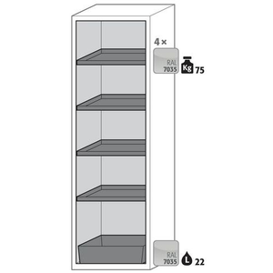Veiligheidskast S-CLASSIC-90 S90.196.060 geel_Asecos, Totale hoogte: 1968 mm, Totale breedte: 596 mm, Totale hoogte (Reeks): Hoog (1500 - 2300 mm), Totale breedte (Reeks): 500 - 800 mm, Aantal legborden: 4, Voor producten: Ontvlambare stoffen, Brandveilig: 90 min, Inhoud opvangbak: 22 L, Aantal vakken: 1, Model: S90.196.060.WDASR, Aantal deuren: 1, Kleur ombouw: Lichtgrijs, Kleur deur: Lichtgrijs, Totale diepte: 616 mm, Nuttige breedte: 450 mm, Nuttige diepte: 524 mm, Nuttige hoogte: 1742 mm, Max. belasting: 600 kg, Materiaal: Staal, Gewicht: 260 kg, RAL: 7035, Special Covid-19: nee, CLP - Ontvlambare stoffen: ja