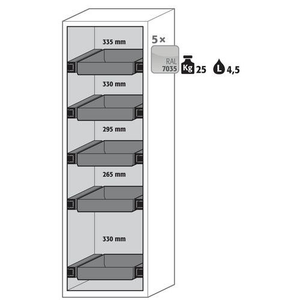 Veiligheidskast S-CLASSIC-90 S90.196.060 geel_Asecos, Totale hoogte: 1968 mm, Totale breedte: 596 mm, Totale hoogte (Reeks): Hoog (1500 - 2300 mm), Totale breedte (Reeks): 500 - 800 mm, Aantal legborden: 4, Voor producten: Ontvlambare stoffen, Brandveilig: 90 min, Inhoud opvangbak: 22 L, Aantal vakken: 1, Model: S90.196.060.R, Aantal deuren: 1, Kleur ombouw: Lichtgrijs, Kleur deur: Lichtgrijs, Totale diepte: 616 mm, Nuttige breedte: 450 mm, Nuttige diepte: 524 mm, Nuttige hoogte: 1742 mm, Max. belasting: 600 kg, Materiaal: Staal, Gewicht: 260 kg, RAL: 7035, Special Covid-19: nee, CLP - Ontvlambare stoffen: ja