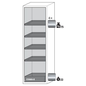 Veiligheidskast S-CLASSIC-90, Totale hoogte: 1968 mm, Totale breedte: 596 mm, Totale hoogte (Reeks): Hoog (1500 - 2300 mm), Totale breedte (Reeks): 500 - 800 mm, Aantal legborden: 4, Voor producten: Ontvlambare stoffen, Brandveilig: 90 min, Inhoud opvangbak: 22 L, Aantal vakken: 1, Model: 4x legbord, 1x opvangbak op de vloer (roestvrij staal), Aantal deuren: 1, Kleur ombouw: Wit, Kleur deur: Wit, Totale diepte: 616 mm, Nuttige breedte: 450 m, Nuttige diepte: 524 mm, Nuttige hoogte: 1742 mm, Materiaal: Staal, Gewicht: 289.165 kg, RAL: 9016, Special Covid-19: nee