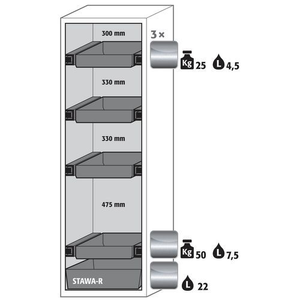 Veiligheidskast S-CLASSIC-90, Totale hoogte: 1968 mm, Totale breedte: 596 mm, Totale hoogte (Reeks): Hoog (1500 - 2300 mm), Totale breedte (Reeks): 500 - 800 mm, Aantal legborden: 0, Voor producten: Ontvlambare stoffen, Brandveilig: 90 min, Inhoud opvangbak: 22 L, Aantal vakken: 1, Model: 3x lade, 1x lade (afvoer), 1x opvangbak op de vloer (roestvrij staal), Aantal deuren: 1, Kleur ombouw: Wit, Kleur deur: Wit, Totale diepte: 616 mm, Nuttige breedte: 450 m, Nuttige diepte: 524 mm, Nuttige hoogte: 1742 mm, Materiaal: Staal, Gewicht: 309.165 kg, RAL: 9016, Special Covid-19: nee