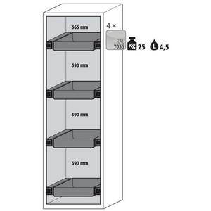 Veiligheidskast S-CLASSIC-90, Totale hoogte: 1968 mm, Totale breedte: 596 mm, Totale hoogte (Reeks): Hoog (1500 - 2300 mm), Totale breedte (Reeks): 500 - 800 mm, Aantal legborden: 0, Voor producten: Ontvlambare stoffen, Brandveilig: 90 min, Inhoud opvangbak: 0 L, Aantal vakken: 1, Model: 4x lade (plaatstaal met epoxy-coating), Aantal deuren: 1, Kleur ombouw: Wit, Kleur deur: Wit, Totale diepte: 616 mm, Nuttige breedte: 450 m, Nuttige diepte: 524 mm, Nuttige hoogte: 1742 mm, Gewicht: 301.165 kg, RAL: 9016, Special Covid-19: nee