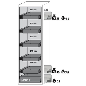 Veilige opslag van ontvlambare gevaarlijke stoffen in werkruimtes conform de wettelijke voorschriften, Functie - constructie: Robuust en duurzaam: stabiele buitenbehuizing van gepoedercoat fijn plaatstaal, 3-voudige deurophanging, volledig sluitmechaniek en veiligheidselementen ter bescherming tegen corrosie buiten de opslagruimte gemonteerd, Ruimtebesparende vouwdeur: kleine benodigde ruimte voor de kast bij geopende deur, Betrouwbaar en veilig: de deur klikt vast in de standaard gemonteerde deurvastzetinrichting voor het veilig plaatsen en uitnemen van emballage, Geen toegang voor onbevoegden: deur afsluitbaar met profielcilinder (geschikt voor centraal deursluitsysteem), Gemakkelijk te plaatsen: stelvoeten voor het compenseren van kleinere oneffenheden in de vloer (tot 10 mm), Be- en ontluchting: geïntegreerd beluchtings- en ventilatiesysteem voor aansluiting (NW 75) op een mechanische afzuiginstallatie Let op: voor de technische ventilatie van de kast adviseren wij de ventilatiebox met geïntegreerde filtratie (zonder gaten in de muren te boren of afvoerleidingen naar buiten).
