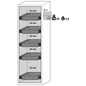 Veilige opslag, voldoet aan de geldende regelgeving voor gevaarlijke, ontvlambare producten in werkruimtes Robuust en duurzaam: stevige constructie aan de buitenkant van staal met epoxy-coating, 3 bevestigingsscharnieren per deur, volledig sluitmechanisme en beveiligingselementen ter bescherming tegen corrosie, gemonteerd buiten de opslagruimte Inklapbare deur die weinig ruimte in beslag neemt: minder ruimte vereist vóór de kast wanneer de deur geopend is Comfortabel: automatisch deursluitmechanisme, deuren kunnen in geopende stand worden gehouden. Veilige opslag van containers Altijd gesloten: het automatisch deursluitsysteem (TSA) sluit de geblokkeerde deur na 60 seconden vrij, geluidsalarm en visueel alarm voordat de deur sluit Gecontroleerd gebruik: vergrendelbare deur, compatibel met centrale vergrendeling Beluchting en ontluchting: ingebouwd beluchtings- en ventilatiesysteem voor aansluiting (diameter 75 mm) op een technisch luchtafvoersysteem Let op: voor de technische ventilatie van de kast adviseren wij de ventilatiebox met geïntegreerde filtratie (zonder gaten in de muren te boren of afvoerleidingen naar buiten).